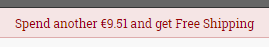 To help your customers qualify for Free Shipping, and also to increase your Average Order Value, you can now opt to display “Spend another €X and get Free Shipping” in the basket. If the user if doesn’t have enough items in their basket to qualify for free shipping, we can turn on an automated message that appears as follows: